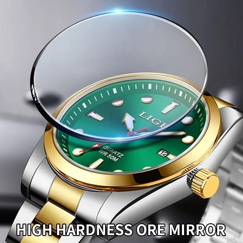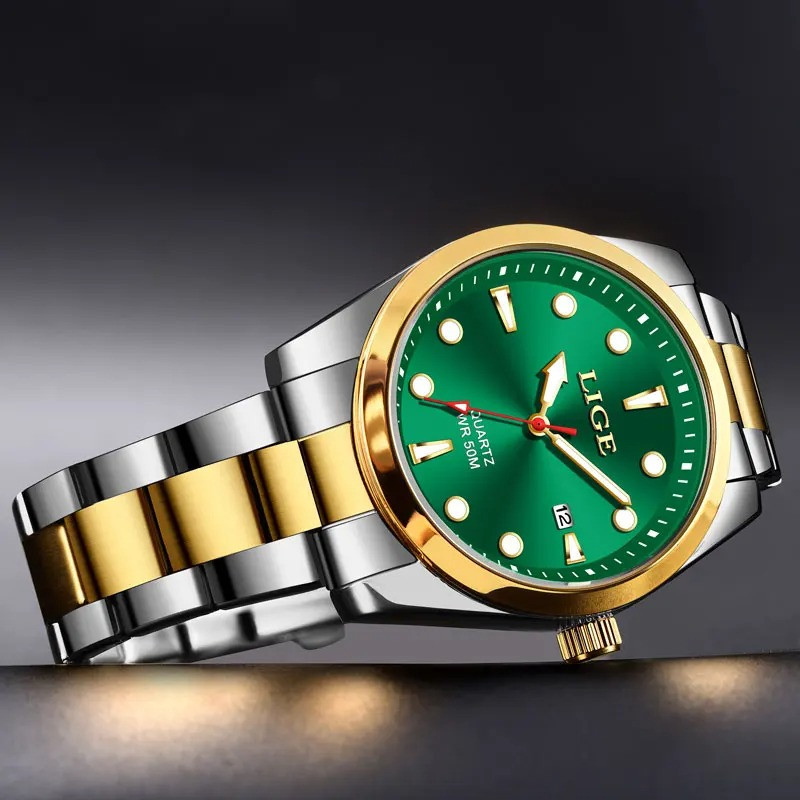 LIGE 89127 GreenTop Brand Luxury Mens Watches Waterproof Ultra Thin Date Clock Male Steel Strap Casual Quartz Watch