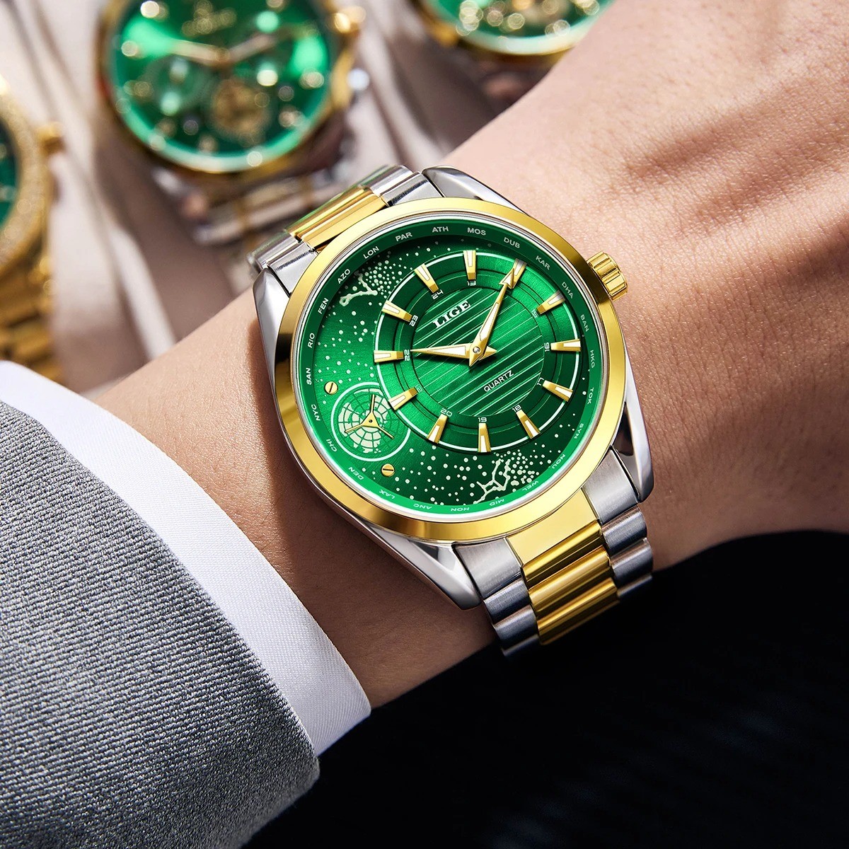 LIGE 89262 Green Original Design Quartz Men's Fashion Luxury Watch